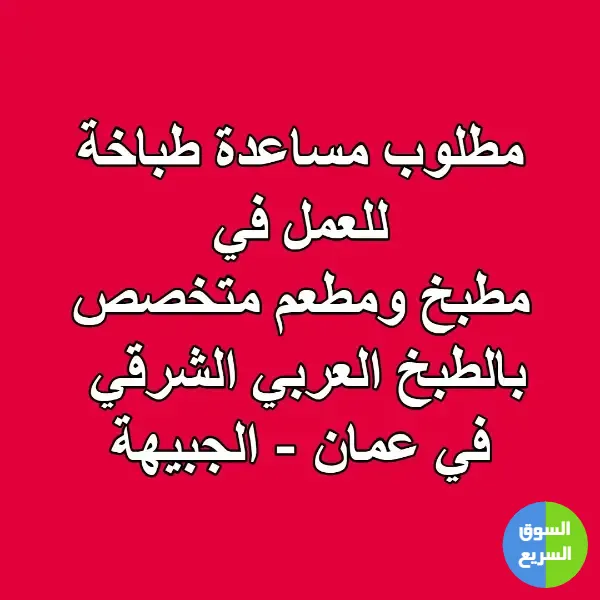 مطلوب مساعدة طباخة للعمل في مطبخ ومطعم متخصص بالطبخ العربي الشرقي