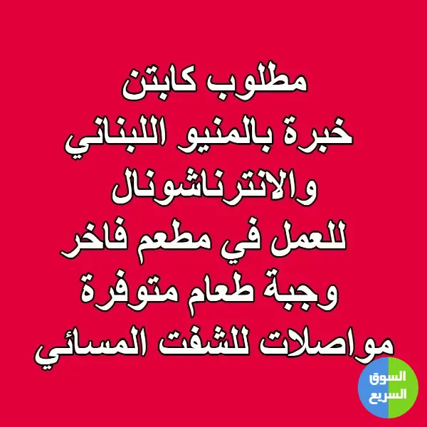 مطلوب كابتن – خبرة بالمنيو اللبناني أو الانترناشونال