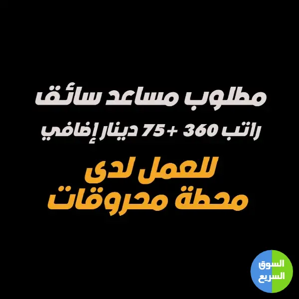 مطلوب مساعد سائق للعمل على سيارة توزيع ديزل / سولار لدى محطة محروقات