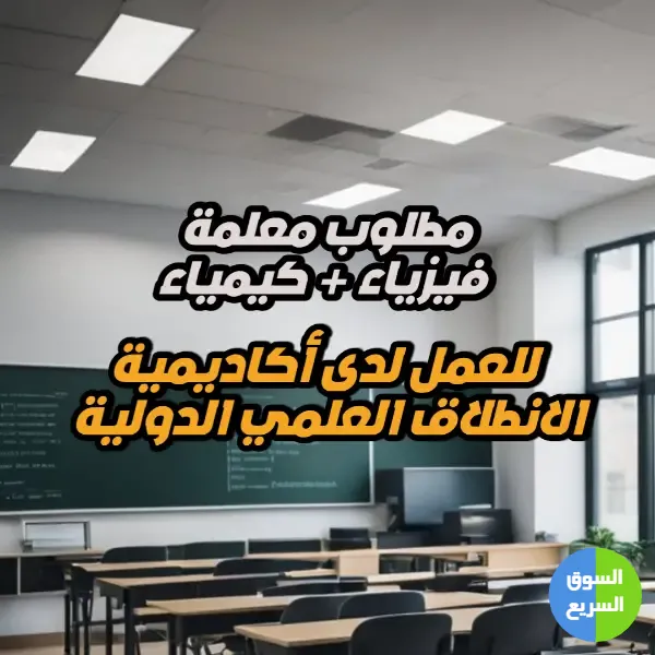 تعلن أكاديمية الانطلاق العلمي الدولية عن حاجتها إلى معلمة كيمياء / فيزياء لتدريس الطالبات بطريقة فعّالة وجذابة، مع تطبيق أساليب تعليمية حديثة وتحفيز الطالبات على التفوق الأكاديمي.
