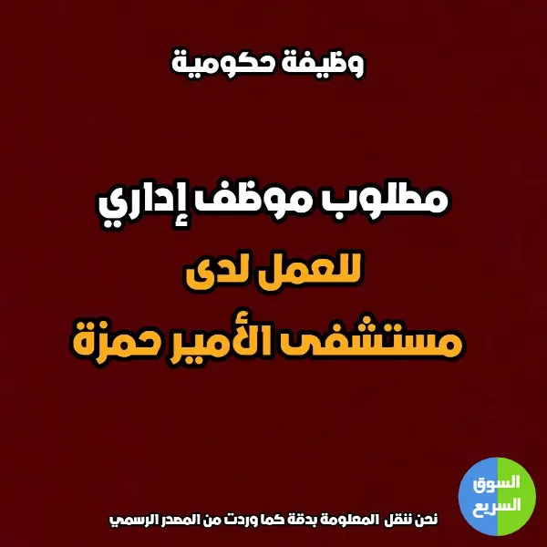 مطلوب موظف إداري للعمل لدى مستشفى الأمير حمزة