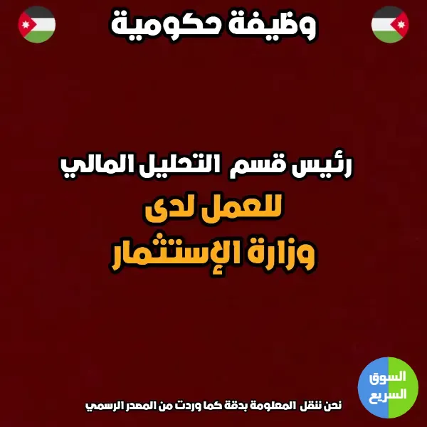 مطلوب رئيس قسم تحليل مالي – وزارة الاستثمار