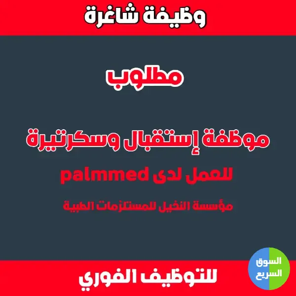 مطلوب سكرتيرة و موظفة استقبال للعمل لدى palmmed / مؤسسة النخيل للمستلزمات الطبية
