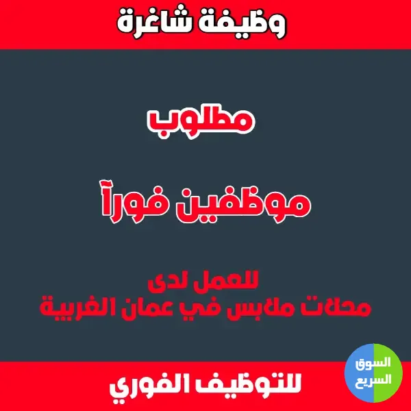 مطلوب موظفين للعمل لدى محلات ملابس في عمان الغربية