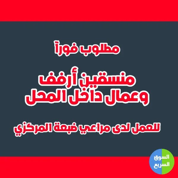 مطلوب منسقين أرفف وعمال داخل المحل للعمل لدى مراعي ضبعة المركزي