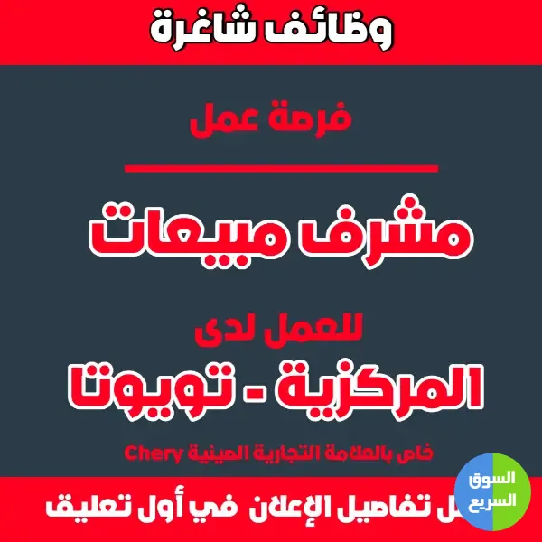 مطلوب مشرف مبيعات - شركة المركزية