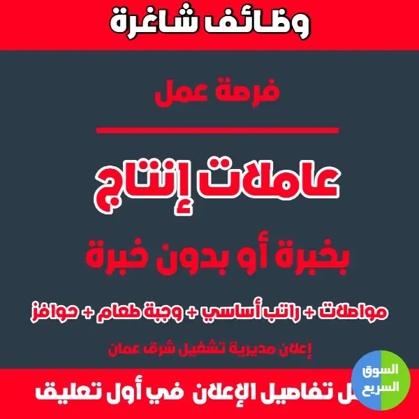 مطلوب عاملات إنتاج بخبرة أو بدون خبرة