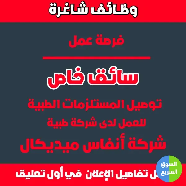 مطلوب سائق للعمل لدى شركة طبية - تسليم المستلزمات للمراكز الطبية