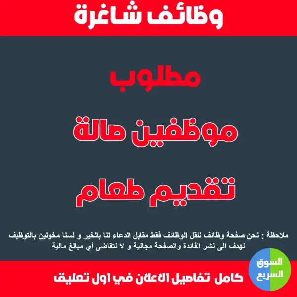 مطلوب موظفين خدمة صالة متفرغين