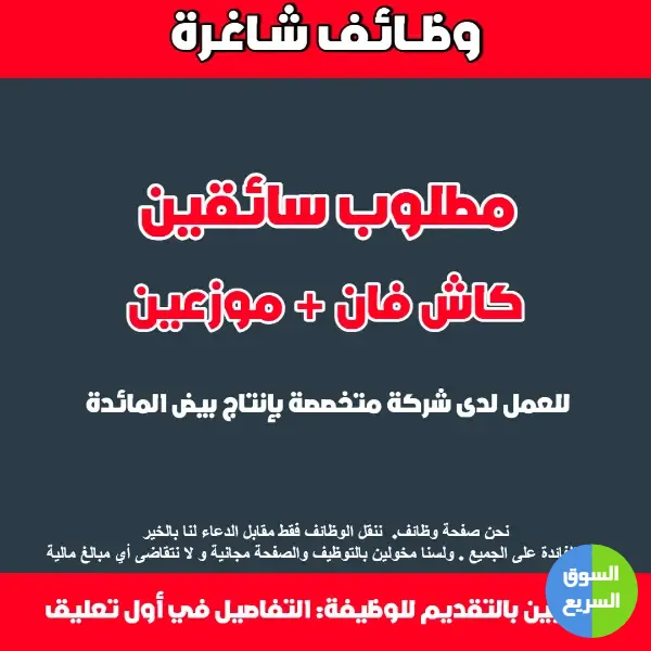 مطلوب سائقين مندوبين مبيعات كاش فان لدى شركة