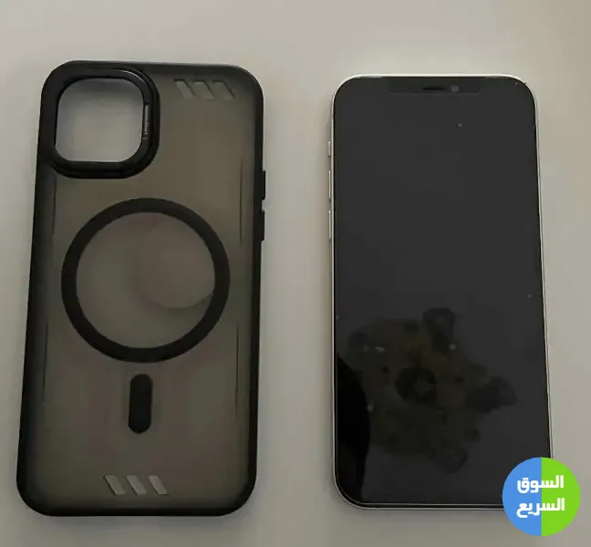 ايفون 12 فضي مستعمل بحالة ممتازة مع شاحن وذاكرة 64 جيجابايت