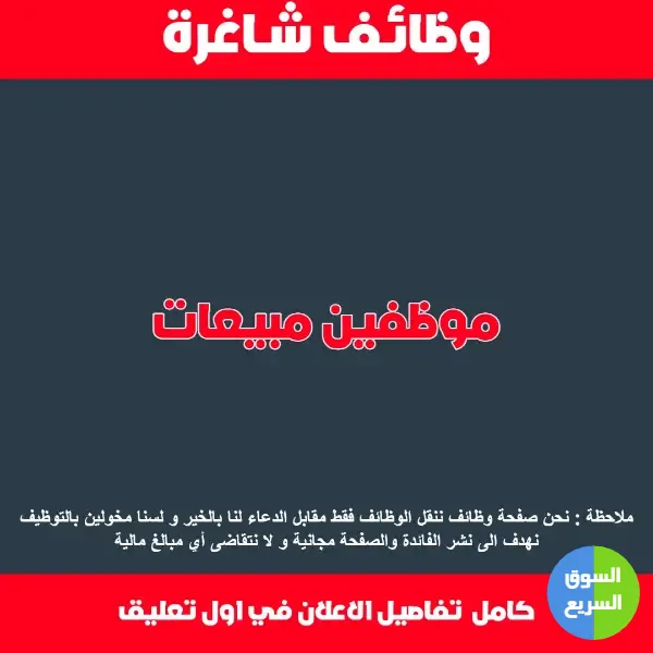 مطلوب مندوبين مبيعات وتوزيع معجانات العمل يومي وفوري مع نسبة على المبيعات