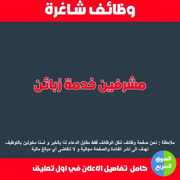 مطلوب مشرفين خدمة زبائن