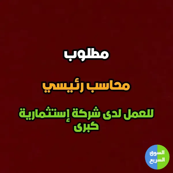 مطلوب محاسب رئيسي للعمل لدى شركة استثمارية كبرى