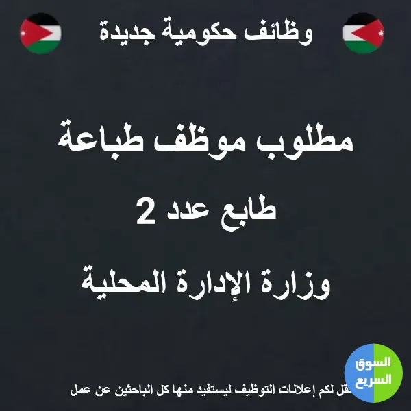 مطلوب موظف طباعة / طابع عدد 2 / وظيفة حكومية