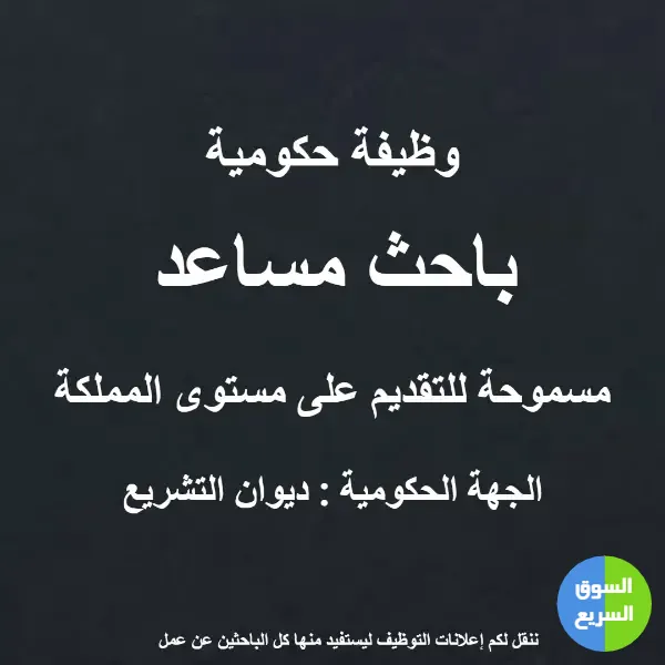 باحث مساعد / ديوان التشريع / وظيفة حكومية / مسموحة على مستوى المملكة