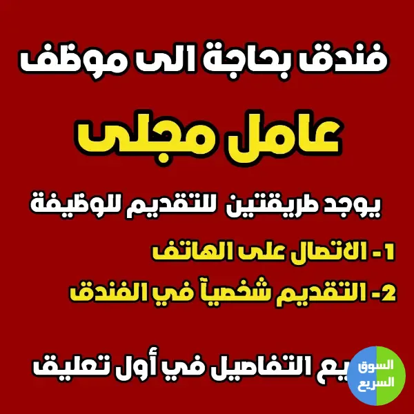 مطلوب عامل مجلى للعمل فورآ في فندق في خلدا