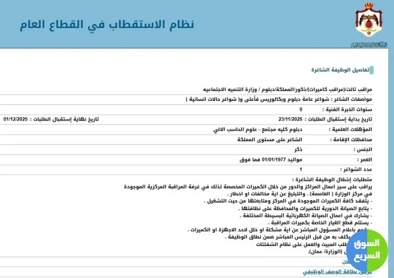شرح مبسط لوظيفة مراقب ثالث - وظيفة حكومية ويتضمن طريقة التقديم