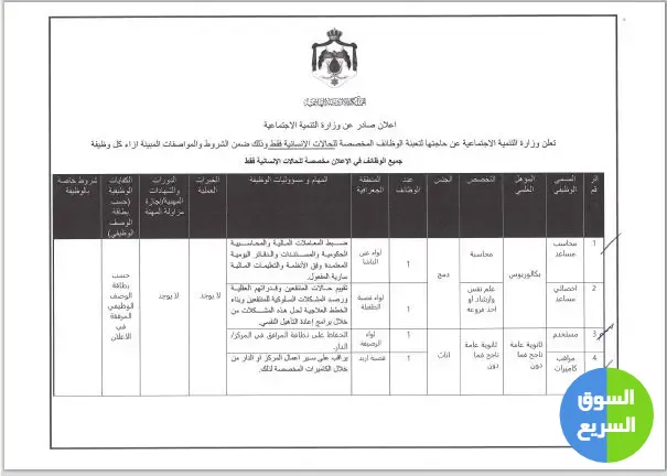 إعلان توظيف - وزارة التنمية الاجتماعية