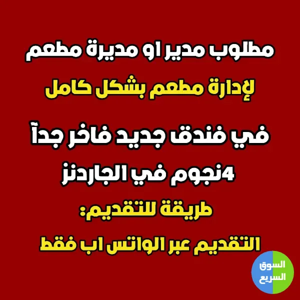 مطلوب مدير او مديرة مطعم / فندق جديد