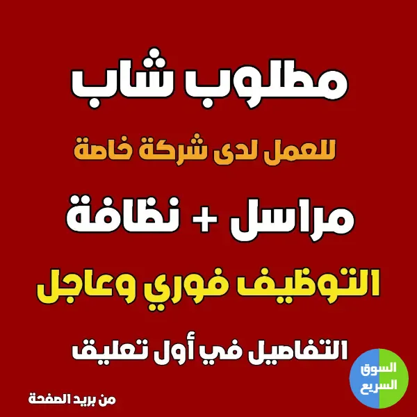 مطلوب شاب متفرغ : مراسل و عامل نظافة للعمل لدى شركة