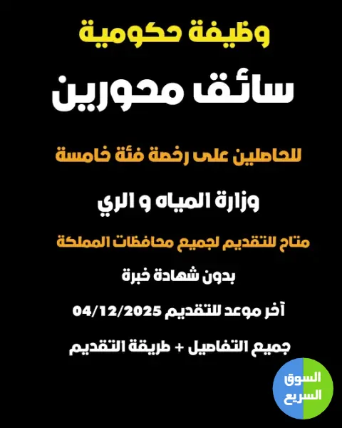 مطلوب سائق – شركة مواد غذائية (طبربور – عمّان)