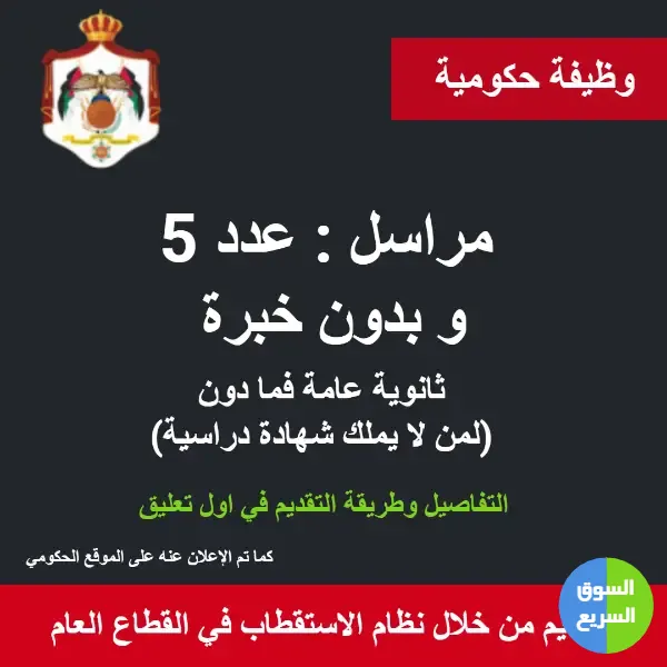 1️⃣ الوظيفة: مراسل/ثانوية عامة فما دون/ذكور/العاصمة / وزارة الصحة