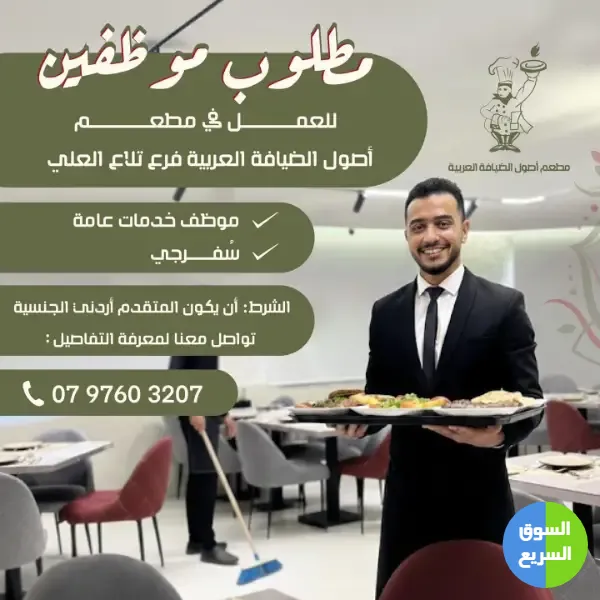 📢 إعلان توظيف: موظف خدمات عامة – مطعم أصول الضيافة (تلاع العلي)