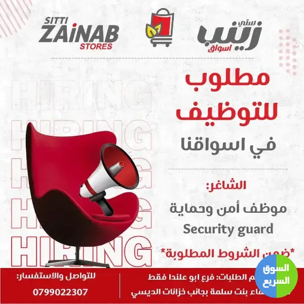 📢 إعلان توظيف: موظف أمن وحماية – اسواق ستي زينب
