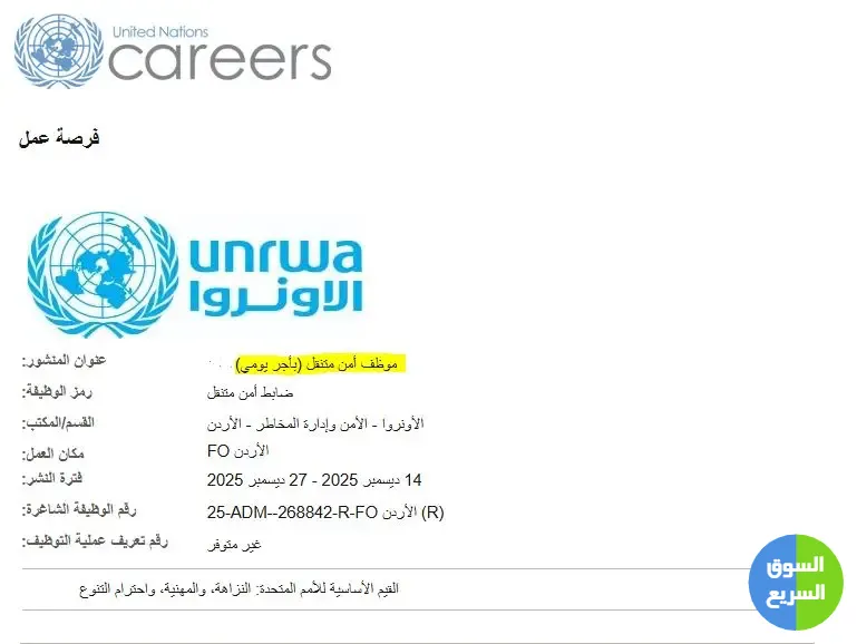 الجهة: الأونروا (UNRWA) – إدارة الأمن وإدارة المخاطر