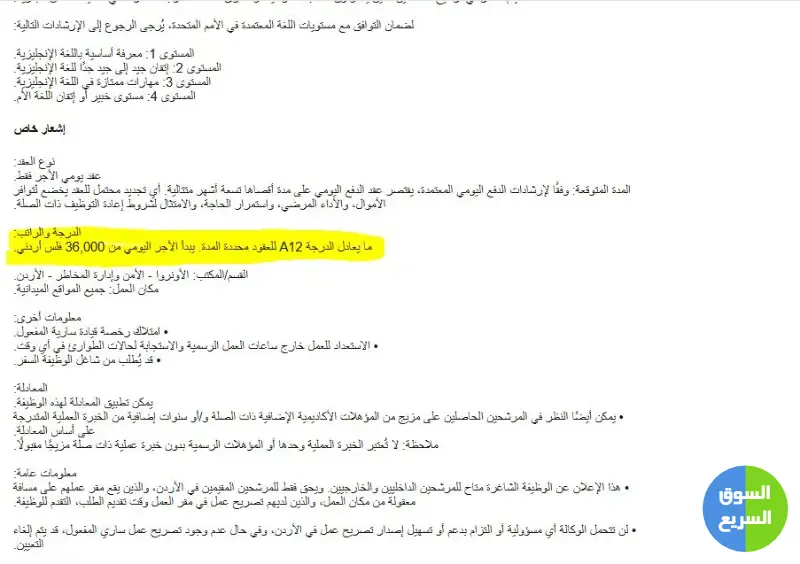 معدل الأجر اليومي: يبدأ من 36دينار يوميآ / 36,000 فلس أردني يومياً