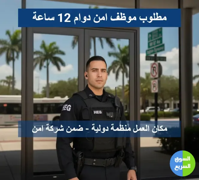 مطلوب موظف امن 12 ساعة دوام في منظمة دولية