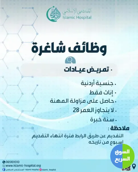 مطلوب موظفين للعمل في المستشفى الاسلامي
