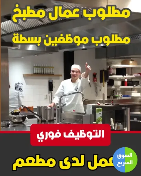 مطلوب عمال مطبخ و مطلوب معلمين بسطة للعمل لدى مطعم