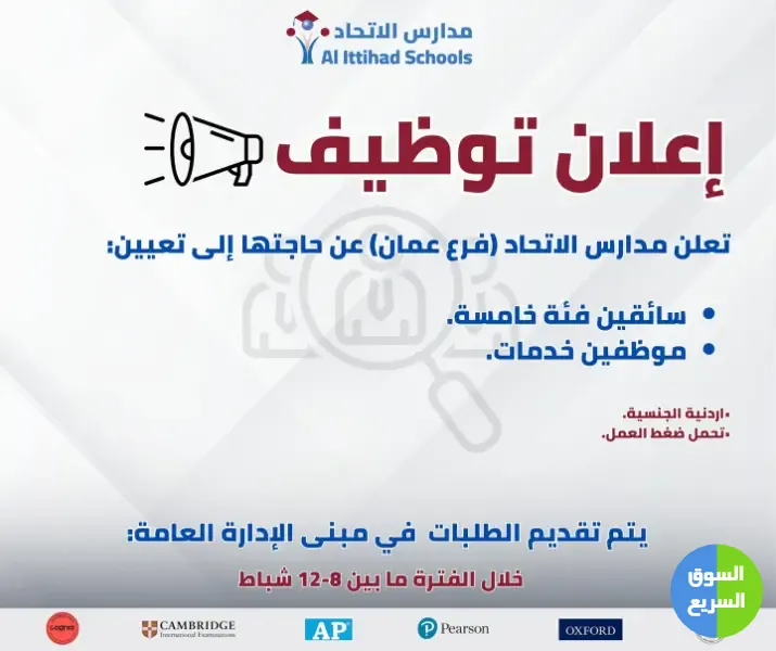 1️⃣ أعلنت مدارس الاتحاد عن حاجتها لموظفين.