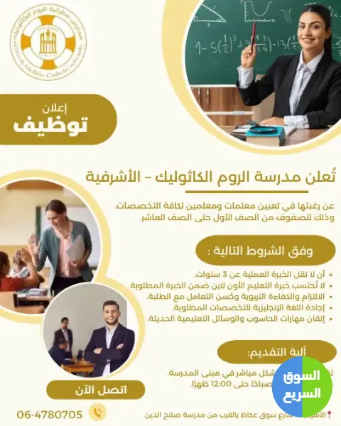 1️⃣ أعلنت مدرسة الروم الكاثوليك – الأشرفية عن فتح باب التوظيف الفوري.