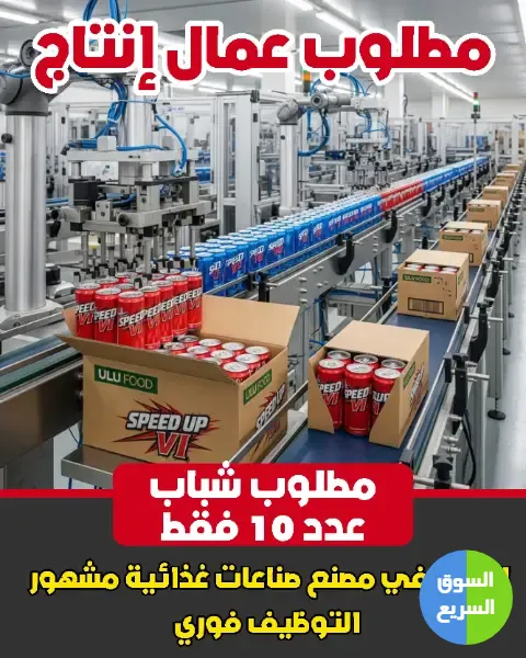 مطلوب شباب إنتاج عدد 10 للعمل في شركة الخليج للصناعات الغذائية