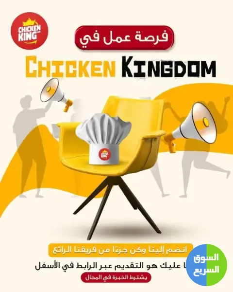 1️⃣ أعلنت مطاعم Chicken Kingdom عن حاجتها لتوظيف موظفي مطبخ وكاشير.