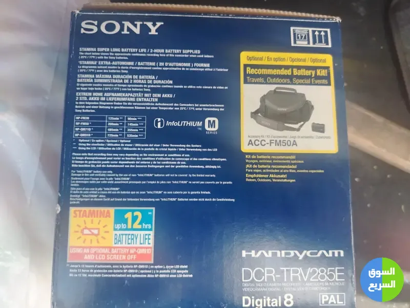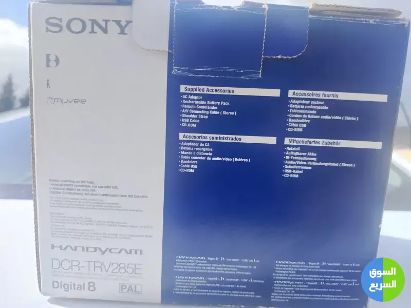 الكاميرا الظاهرة بالصورة هي: Sony Handycam Digital8 – موديل DCR-TRV285E (نظام PAL) من شركة Sony.