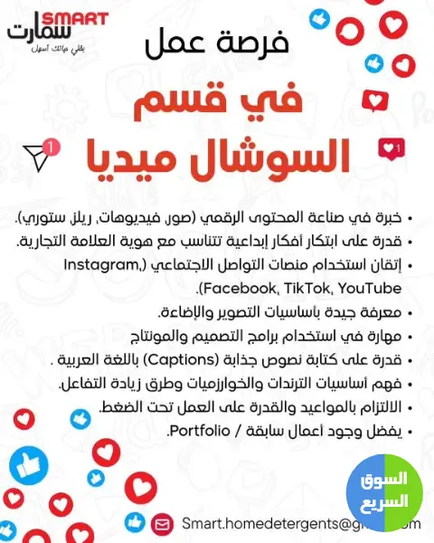 وظائف سوشال ميديا في شركة سمارت للهدايا و المنظفات