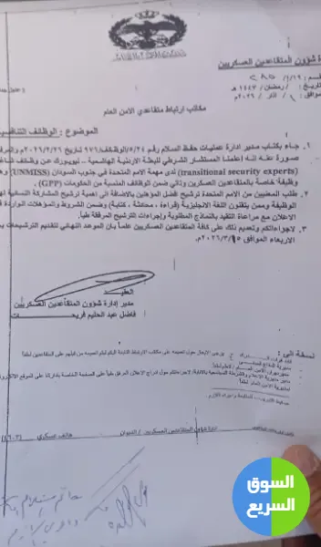 🔟 المصدر: كتاب مدير إدارة عمليات حفظ السلام رقم (5/4/وظائف/1976) تاريخ (26/02/2026).