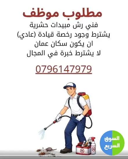 1️⃣ أعلنت شركة Advanced Pest Control Service عن حاجتها إلى فني رش مبيدات حشرية.
