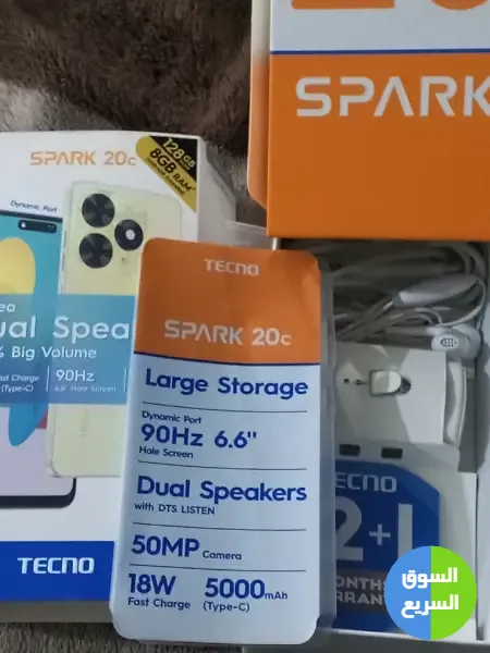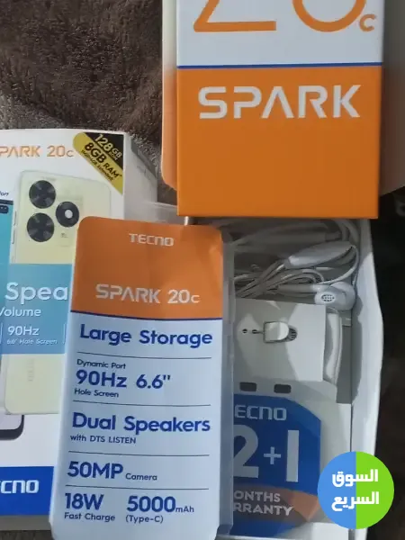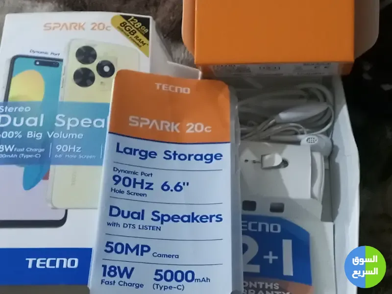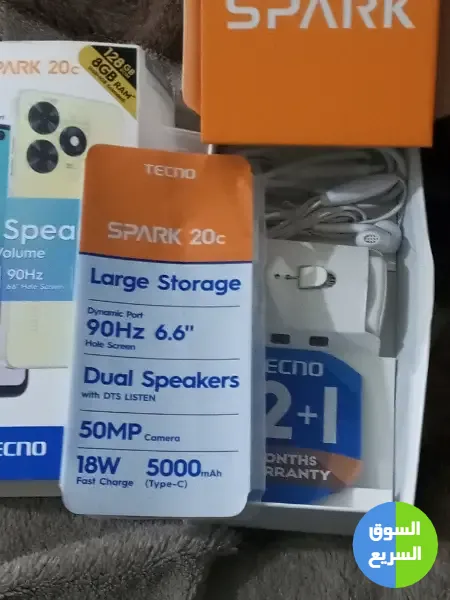 TECNo spark 20c 128g استخدام اقل من شهر بالكرتونه للبيع بسعر ممتاز