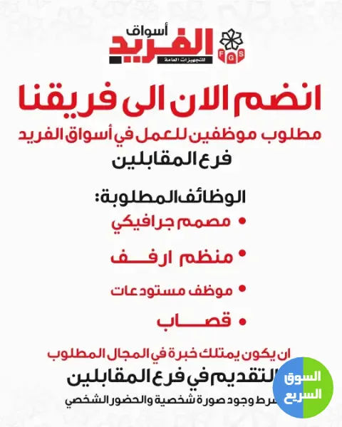 وظائف في اسواق الفريد