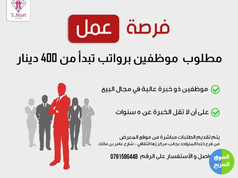 مطلوب موظفين و موظفات مبيعات