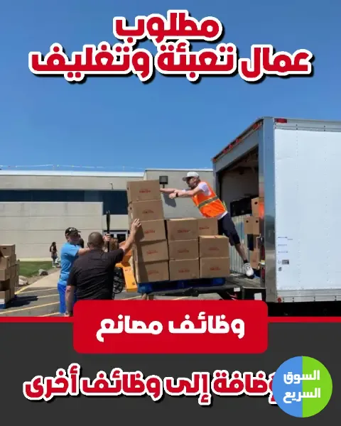 مطلوب عمال تعبئة و تغليف و عمال تشغيل ماكينات بالإضافة إلى وظائف أخرى