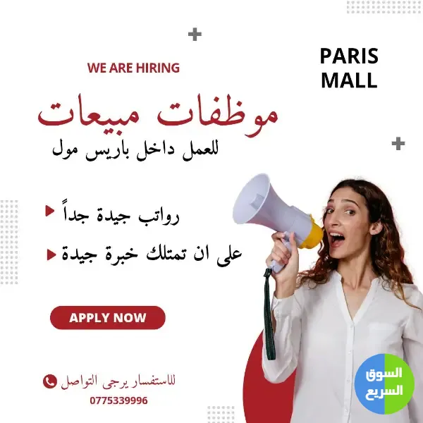 1️⃣ أعلن متجر داخل باريس مول عن حاجته لتوظيف موظفات مبيعات.