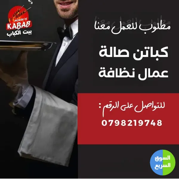 مطلوب شباب عمال نظافة و شباب صالة للعمل في مطاعم كباب مشهورة
